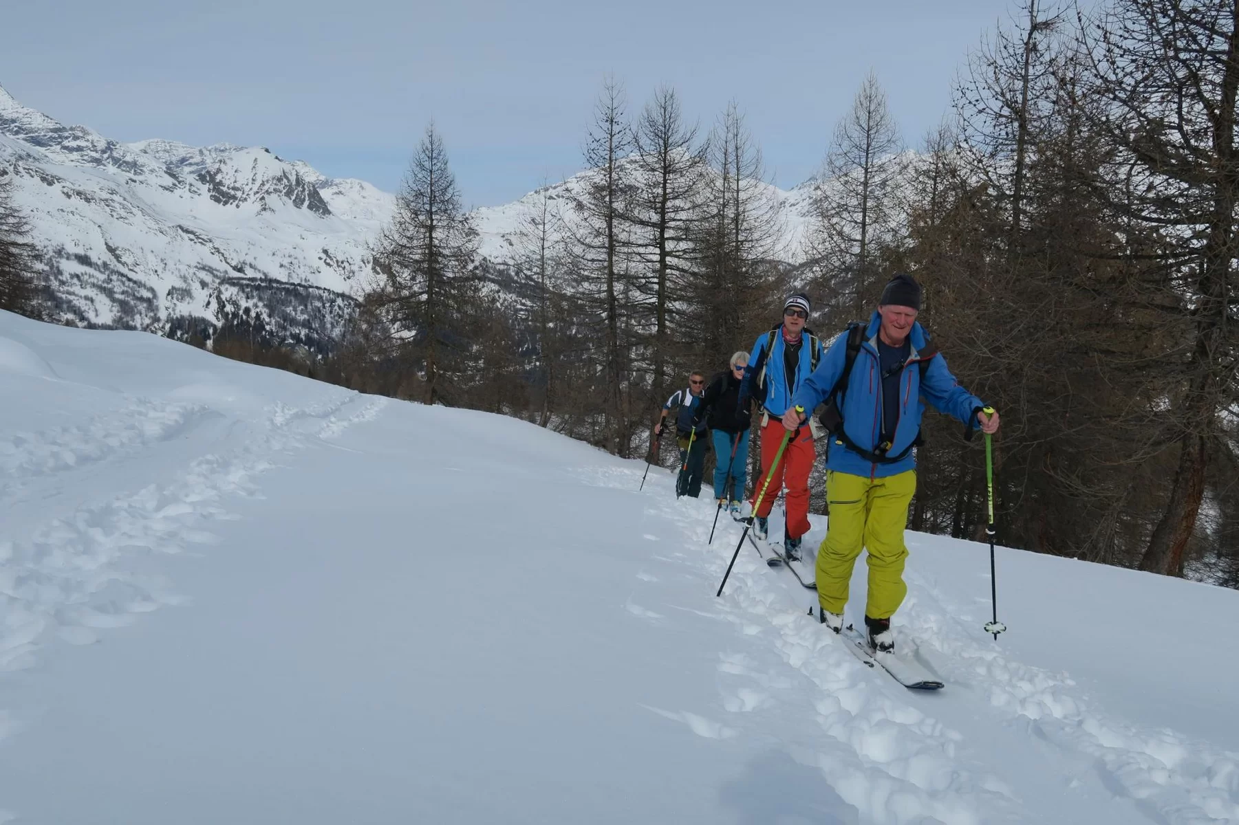 Der in Poschiavo wohnhafte TL entschied sich heute für eine Skitour in Val di Campo, um nicht so früh aufstehen zu müssen. Aufgrund div. Informationen, wonach der Schnee im Gebiet Motal besser als im Gebiet Piz Cunfin ist, beschloss die Gruppe einheitlich in Richtung Motal aufzusteigen. Nach der Waldpassage öffnete sich das Gelände und der Blick zum Piz Palü und Varuna hat den ersten Aufstieg bereits belohn. Es ging dann in Richtung Cantonascia und weiter über den Gipfelhang zum Piz Motal auf 2517 müM. Die Rundsicht aus dieser Stelle ist immer wunderschön. Nach einer „tour d’horizon“ und eine kurze Pause folgte die Abfahrt in Richtung Terzana. Die Schneeverhältnisse im Gebiet sind gut. Es gab noch unberührte Pulverhänge, die öfters zu kurz waren. Man kann trotzdem von einer gelungenen Skitour sprechen. An die heutige Tour nahmen: Susi, Guido, Martin und Thomas teil. Geleitet wurde die Tour durch Ezio als TL.