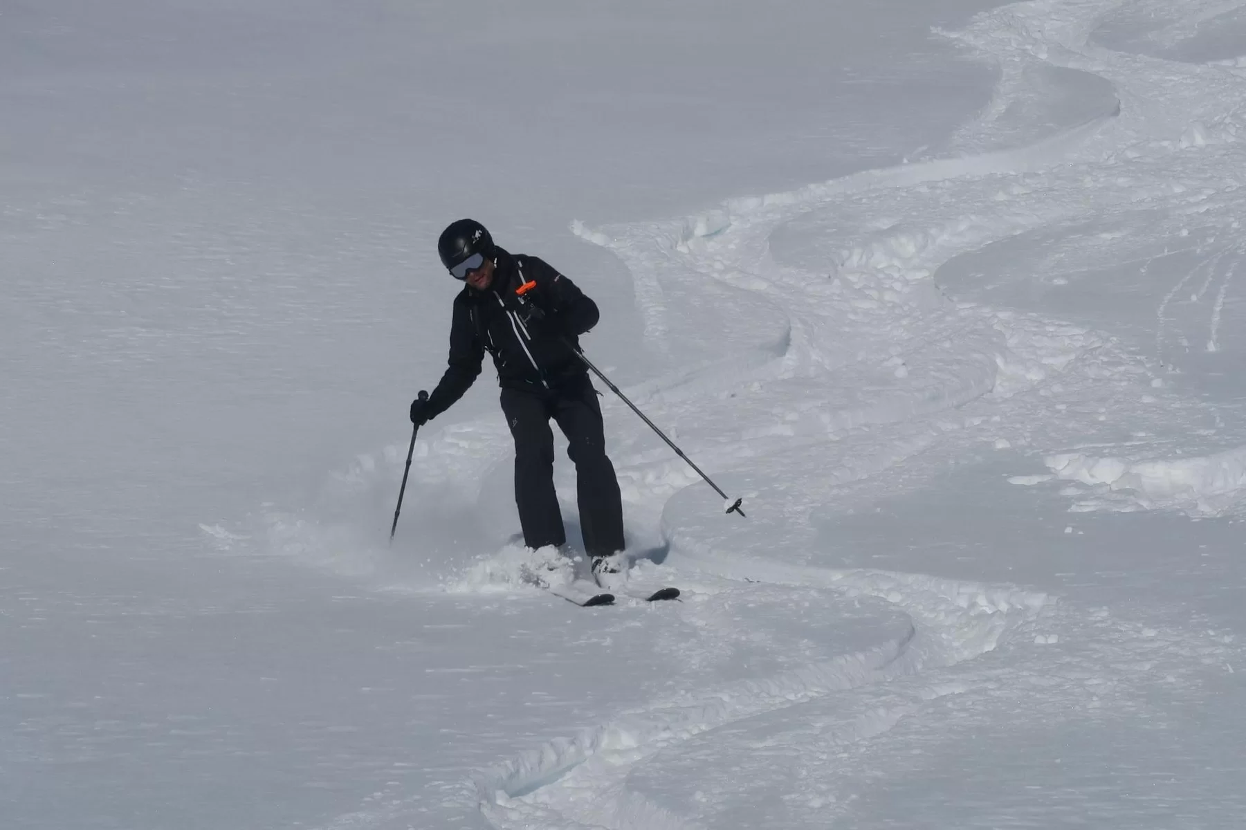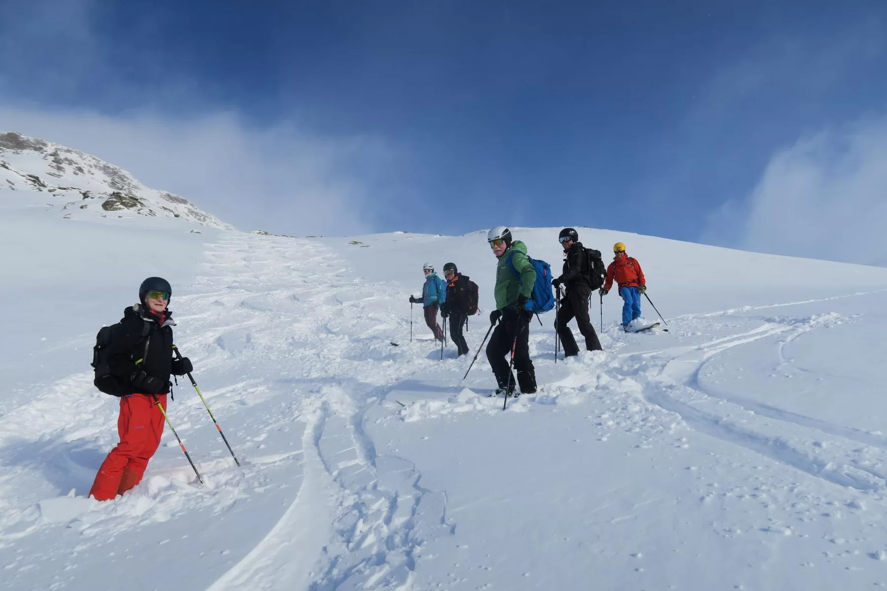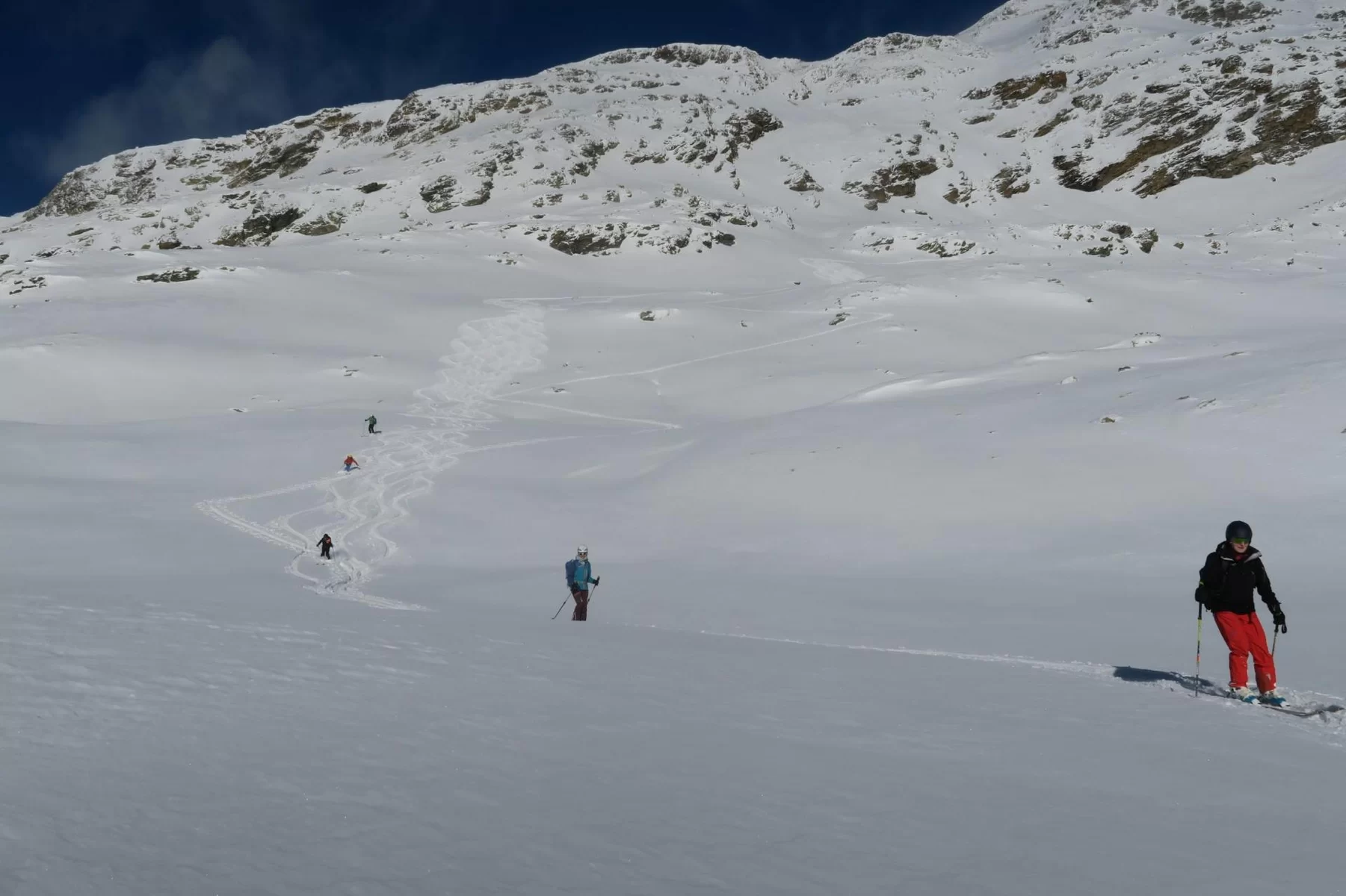 Frühaufsteher werden in der Regel belohnt. Heute haben wir die noch unverspurten Hänge der Motta Bianca als Erste genossen. Vor Ort haben wir wunderschöne Verhältnisse angetroffen. Einige Steinkontakte gab es trotzdem, da sich der Schnee noch nicht gesetzt hat. Im Gebiet liegen ca. 50 cm Schnee. Schade, dass der Wind bereits einige Schäden angerichtet hat. Nach einer ersten Abfahrt haben wir nochmals die Felle montiert und sind wieder an einem anderen Ort aufgestiegen. Es hat sich gelohnt. Es war eine gelungene Tour. Bis morgen. TL Ezio