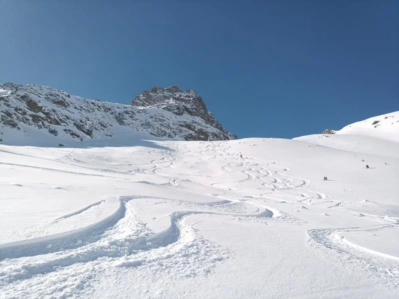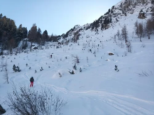 Nach einer kalten Nacht und etwas Neuschnee, waren die Verhältnisse heute perfekt. Zuerst stiegen wir in Richtung Lai da Palpuegna auf, nachher ging es steil zu Murtel Salamun hoch. Nach 3 Stunden erreichten alle 12 Teilnehmer den Gipfel, ausser 2 anderen Tourengängern war heute niemand unterwegs. Wir genossen die 10cm Pulverschnee bis hinunter nach Preda.