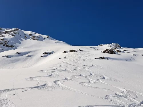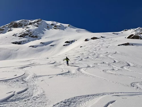 Der zweite schöne Tag nach dem letzten Schneefall liess auf Powder hoffen. Und ja, wir haben ihn gefunden :-) Der Aufstieg durch das Val Minor zum gleichnamigen Piz hat sich gelohnt.