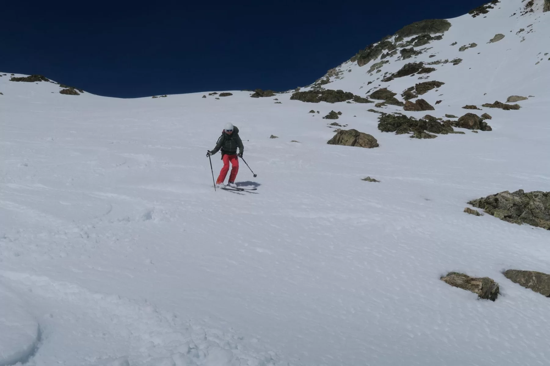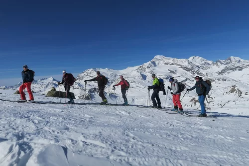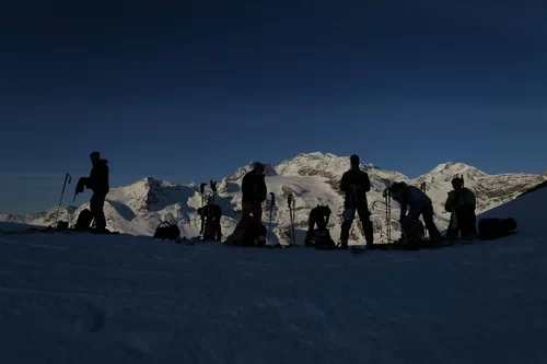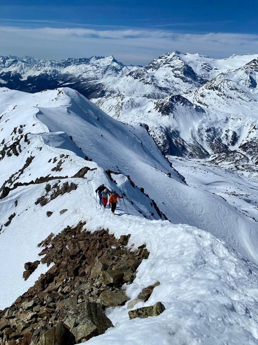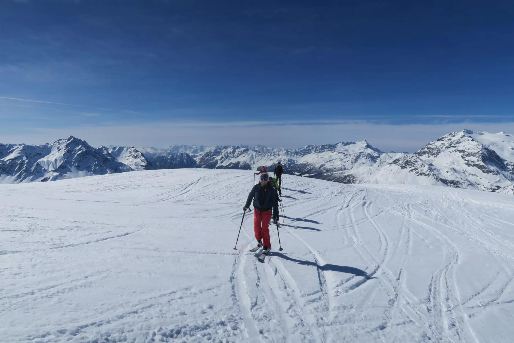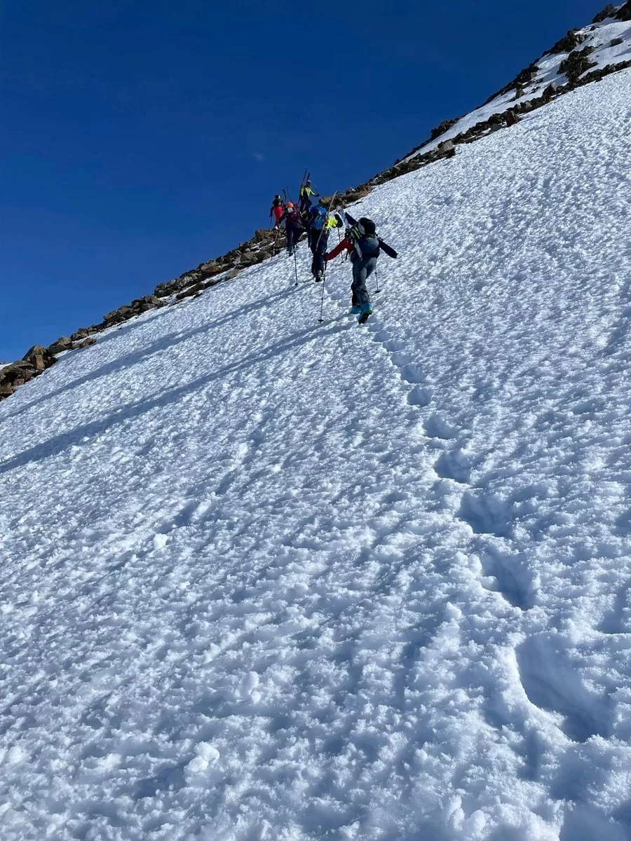 Am Samstagmorgen um 06:15 startete die 7-Gruppe + TL um 06:15 Uhr beim Hotel Ospizio Bernina, mit dem Ziel Piz Ursera, mit anschließender Abfahrt zur Saoseohütte. Nach dem ersten Aufstieg zur Fuorcla Minor folgte eine rassige und eher ruppige Abfahrt zur Fuorcla di Livigno. Ab dort ging es weiter in Richtung Piz Ursera. Die gut gelaunte Gruppe erreichte den Gipfel, dank der gefrorenen Schneedecke und der angenehmen Temperatur gegen 11:00 Uhr. Nach einer kurzen Pause am Gipfel, bzw. beim Skidepot, folge eine schöne Abfahrt bis zum Rifugio Saoseo. Erst im Wald kurz vor Alpe Campo gab es 2 – 3 aperen Stellen, weshalb die Ski kurz abgezogen werden mussten. Auf der Terrasse unserer SAC Hütte haben wir dann den Nachmittag mit vile Sonnenschein genossen. Vor dem Nachtessen planten wir den nächsten Tag, im Wissen, dass es möglicherweise im Wasser fallen könnte. Nach dem Nachtessen (danke Chatrina, Gigi und Maria für das feine Nachtessen und die gute Bedienung) gingen die meisten schlafen. Am Sonntagmorgen mussten wir leider feststellen, dass das Wetter nicht auf unserer Seite war. Nach einem reichhaltigen Morgenessen mit frischem Zopf machten wir uns mit leichtem Regen auf dem Weg nach Sfazù, wo unsere Tour beendet wurde. Teilgenommen haben: Martina, Regina, Andrea, Caroline, Rolf, Donat, Thomas und TL Ezio.
