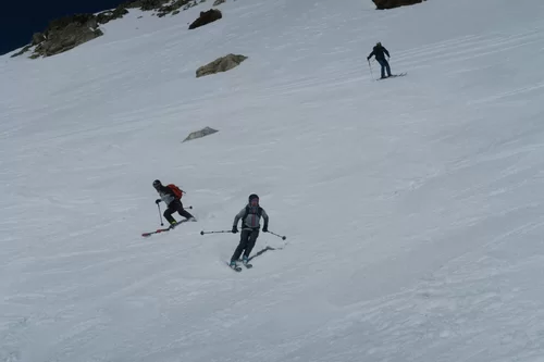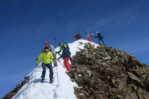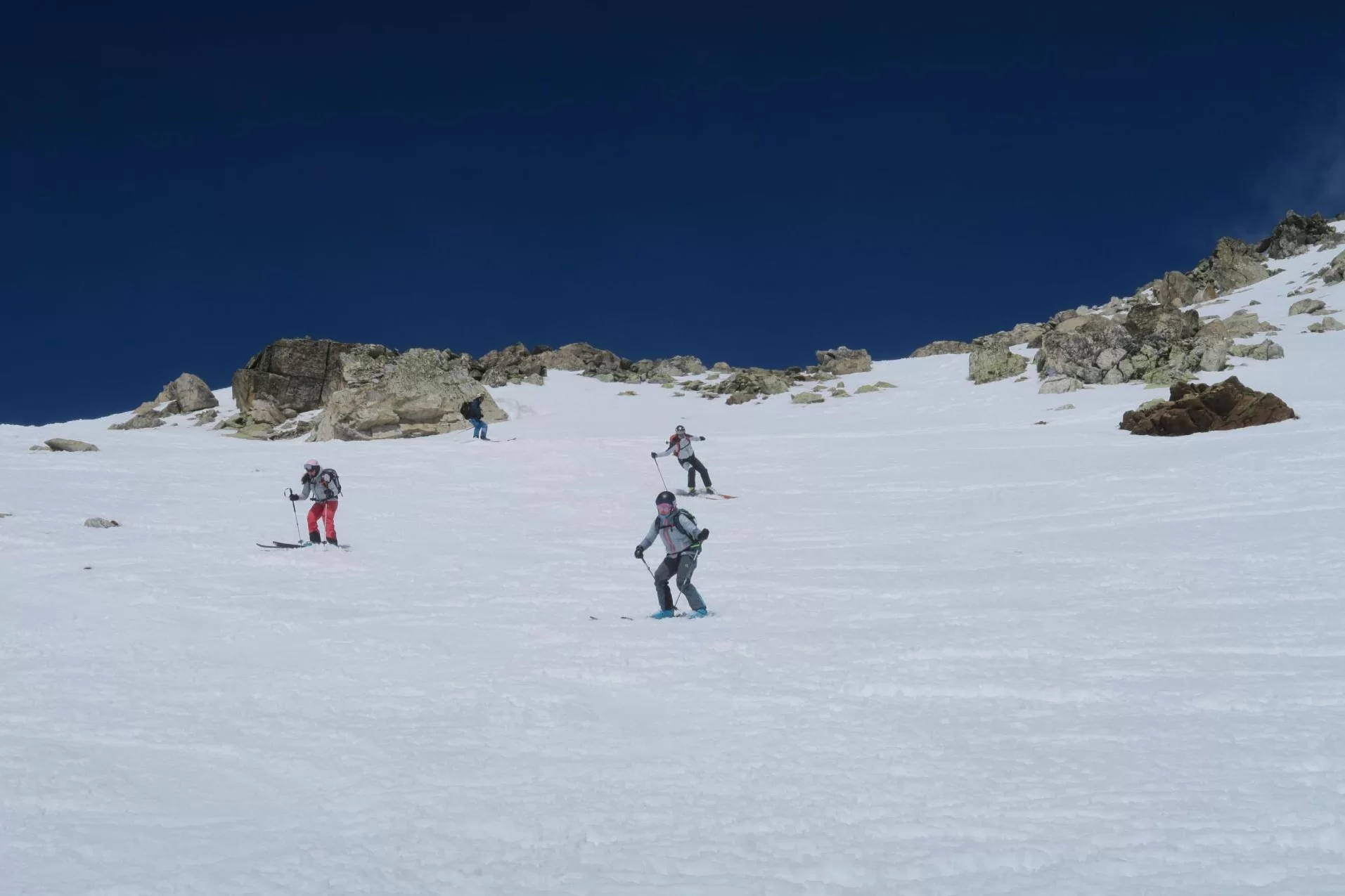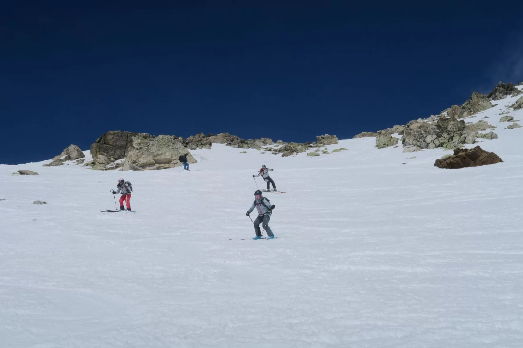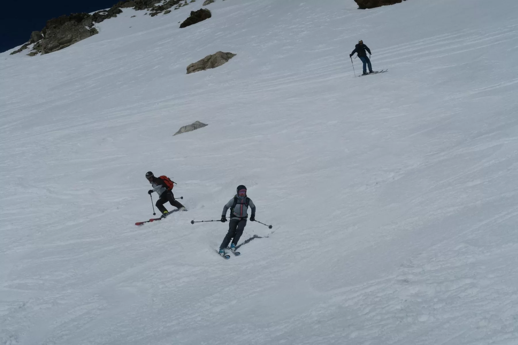 Am Samstagmorgen um 06:15 startete die 7-Gruppe + TL um 06:15 Uhr beim Hotel Ospizio Bernina, mit dem Ziel Piz Ursera, mit anschließender Abfahrt zur Saoseohütte. Nach dem ersten Aufstieg zur Fuorcla Minor folgte eine rassige und eher ruppige Abfahrt zur Fuorcla di Livigno. Ab dort ging es weiter in Richtung Piz Ursera. Die gut gelaunte Gruppe erreichte den Gipfel, dank der gefrorenen Schneedecke und der angenehmen Temperatur gegen 11:00 Uhr. Nach einer kurzen Pause am Gipfel, bzw. beim Skidepot, folge eine schöne Abfahrt bis zum Rifugio Saoseo. Erst im Wald kurz vor Alpe Campo gab es 2 – 3 aperen Stellen, weshalb die Ski kurz abgezogen werden mussten. Auf der Terrasse unserer SAC Hütte haben wir dann den Nachmittag mit vile Sonnenschein genossen. Vor dem Nachtessen planten wir den nächsten Tag, im Wissen, dass es möglicherweise im Wasser fallen könnte. Nach dem Nachtessen (danke Chatrina, Gigi und Maria für das feine Nachtessen und die gute Bedienung) gingen die meisten schlafen. Am Sonntagmorgen mussten wir leider feststellen, dass das Wetter nicht auf unserer Seite war. Nach einem reichhaltigen Morgenessen mit frischem Zopf machten wir uns mit leichtem Regen auf dem Weg nach Sfazù, wo unsere Tour beendet wurde. Teilgenommen haben: Martina, Regina, Andrea, Caroline, Rolf, Donat, Thomas und TL Ezio.