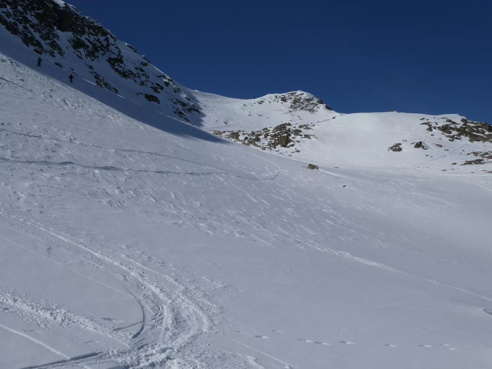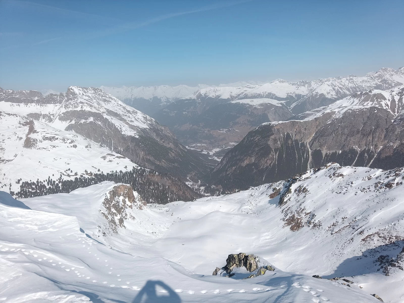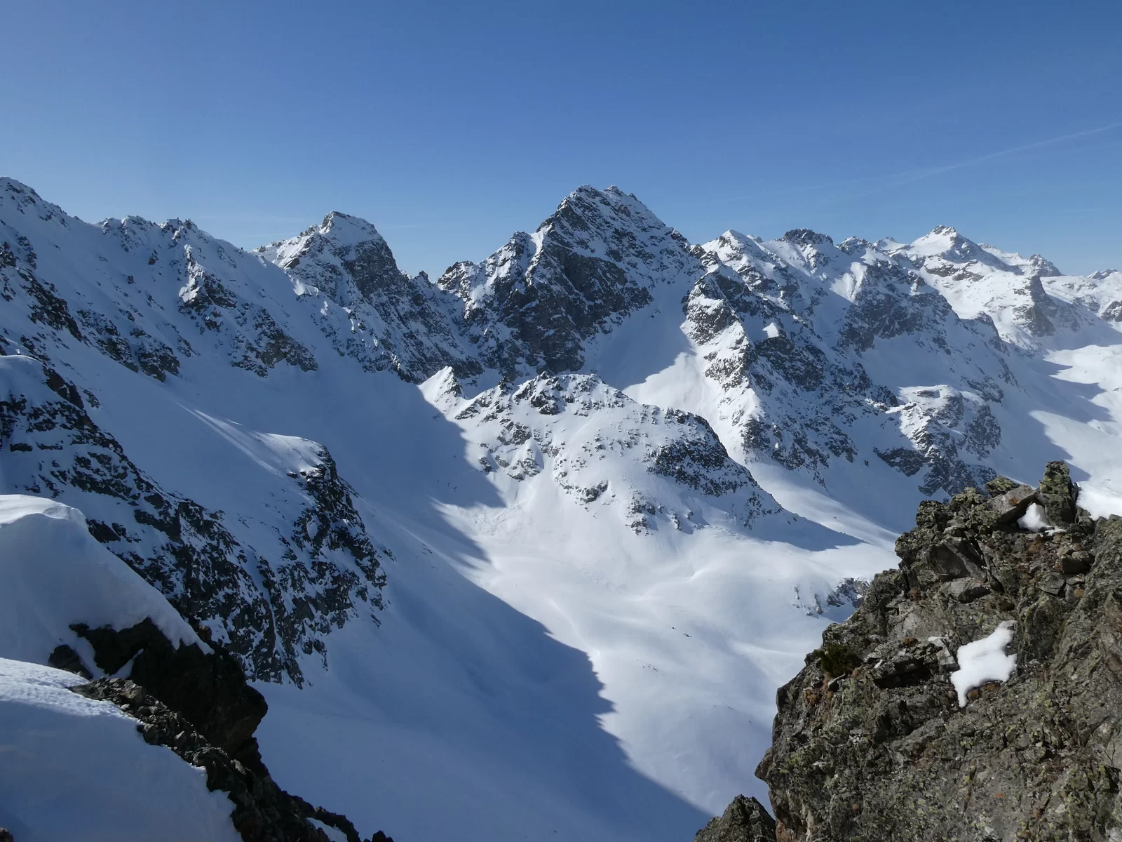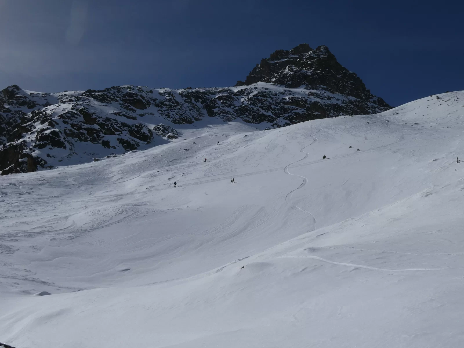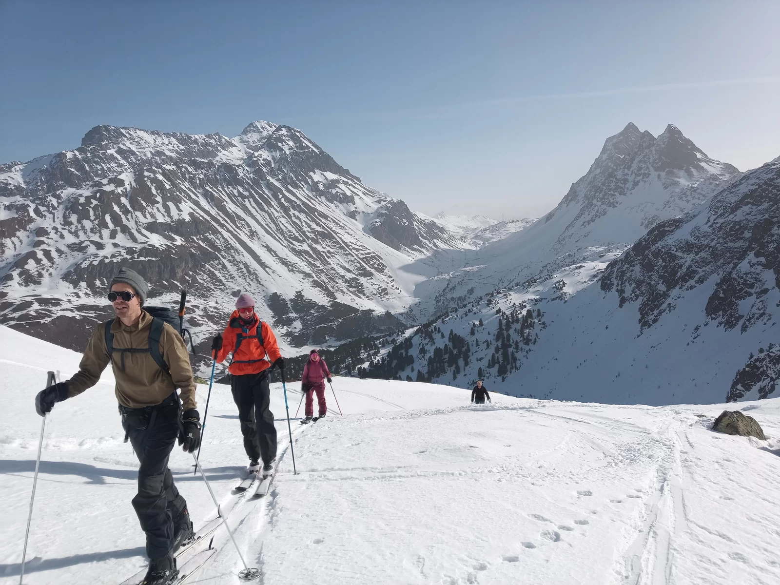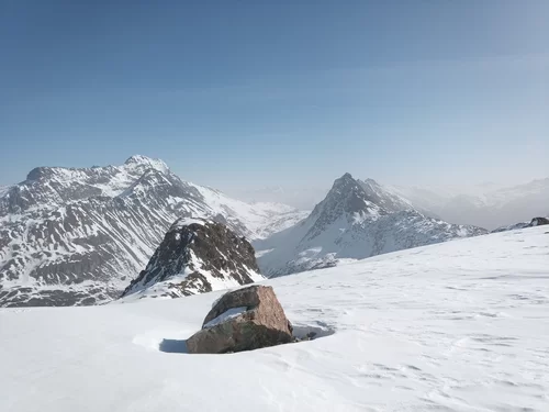Nachdem wir alle in Preda angekommen waren, hörte ich auf mein Bauchgefühl und änderte infolge der immer noch sehr heimtückischen Lawinensituation nochmals meinen Plan. Anstatt auf den Piz Salteras zu gehen, entschied ich mich Richtung Piz Murtel Trigd aufzusteigen, da dies lawinentechnisch einiges günstiger war. Zuerst durch den Wald in Richtung Lai da Palpuegna und dann eine lange, steile Traverse hoch, waren wir in 3 Stunden auf dem Gipfel. Die Verhältnisse im Aufstieg waren hervorragend, viel Schnee und schon gespurt. Bei der Abfahrt hatten wir oben Pulverschnee und unten Sulzschnee. Auf der ganzen Tour begegneten wir nur einem Tourengänger, wo gibt es das noch?