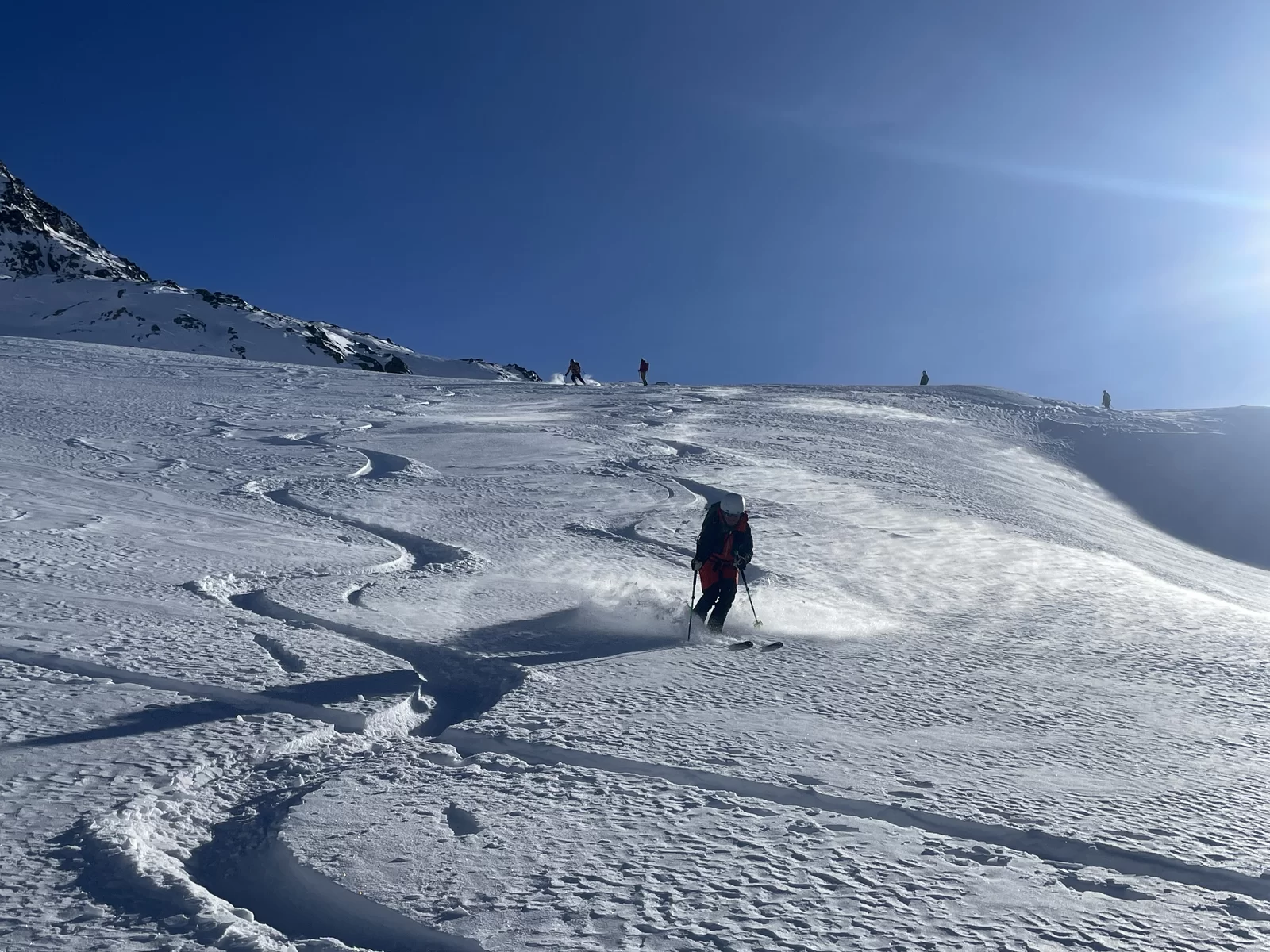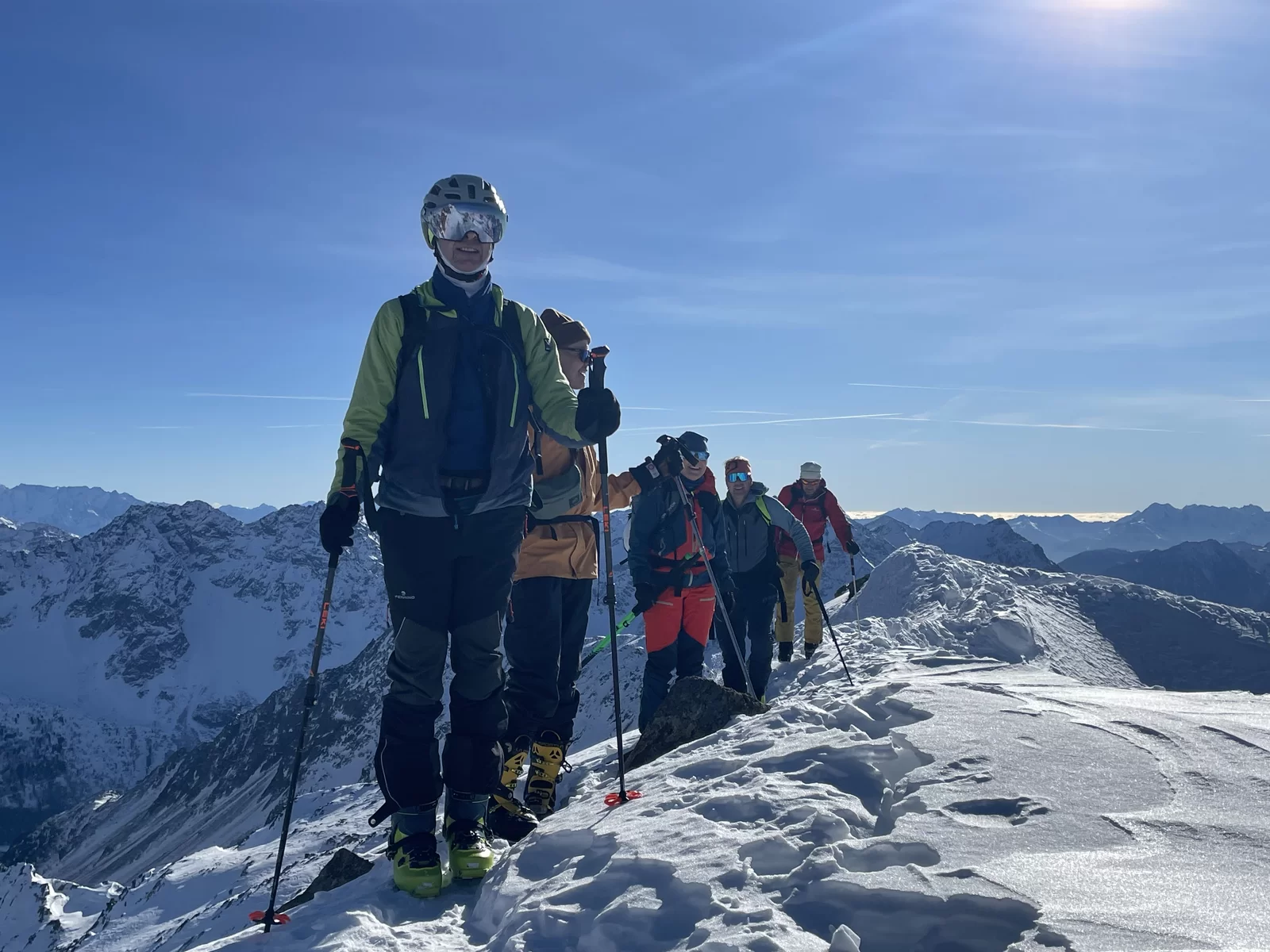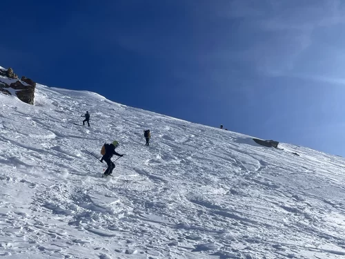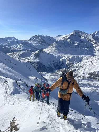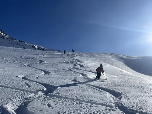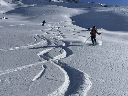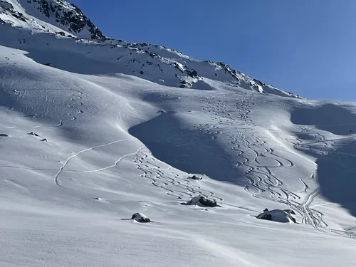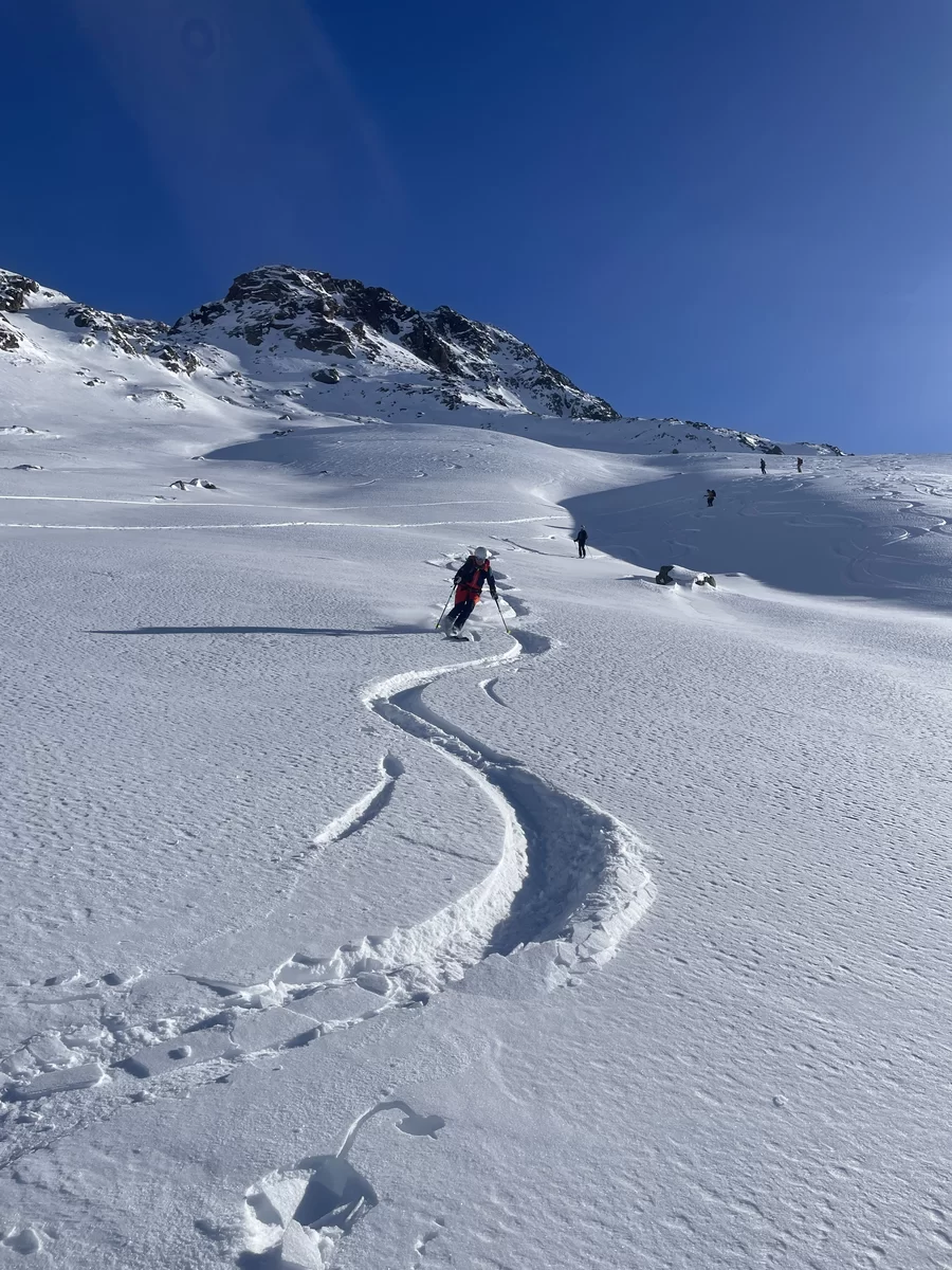 Wenn der Schnee nicht vom Himmel fällt, dann braucht es Mut und Glück, um den Interessierten trotzdem etwas bieten zu können. Nach meiner Erkundungstour am Piz Ursera vor einer Woche folgten 2 Tage Nordwind. Vor dem Start war ich deshalb nicht sicher, noch etwas Pulver zu finden. Die durgeführte Skitour war schlussendlich viel besser als zuerst vermutet wurde. Man hat noch sehr viele unverspurten Passagen gefunden. Die Teilnehmergruppe, bestehend aus 2 TL und 4 Teilnehmer, hat den Aufstieg zum Piz Ursera in 3 Std. 15 Minuten bewältigt, dies trotz kalte Biese. Man war also zügiger unterwegs als ich gerechnet habe. Eine geniale und sportliche Gruppe. Nach einem kurze Halt auf dem Gipfel, mit strahlender Sonne und eine ausgezeichnete Weitsicht, folgte die Abfahrt. Meiner Meinung nach eine gelungene Neujahrestour. In der Val Orsera hat es noch Platz für weitere Touren, sofern das Wetter dies es zulässt. Schön war mit Euch diesen speziellen Tag verbringen zu dürfen. Den SAC-ler, Tourenkolleginnen und Kollegen, TL und Vorstand viel Glück im neuen Jahr.