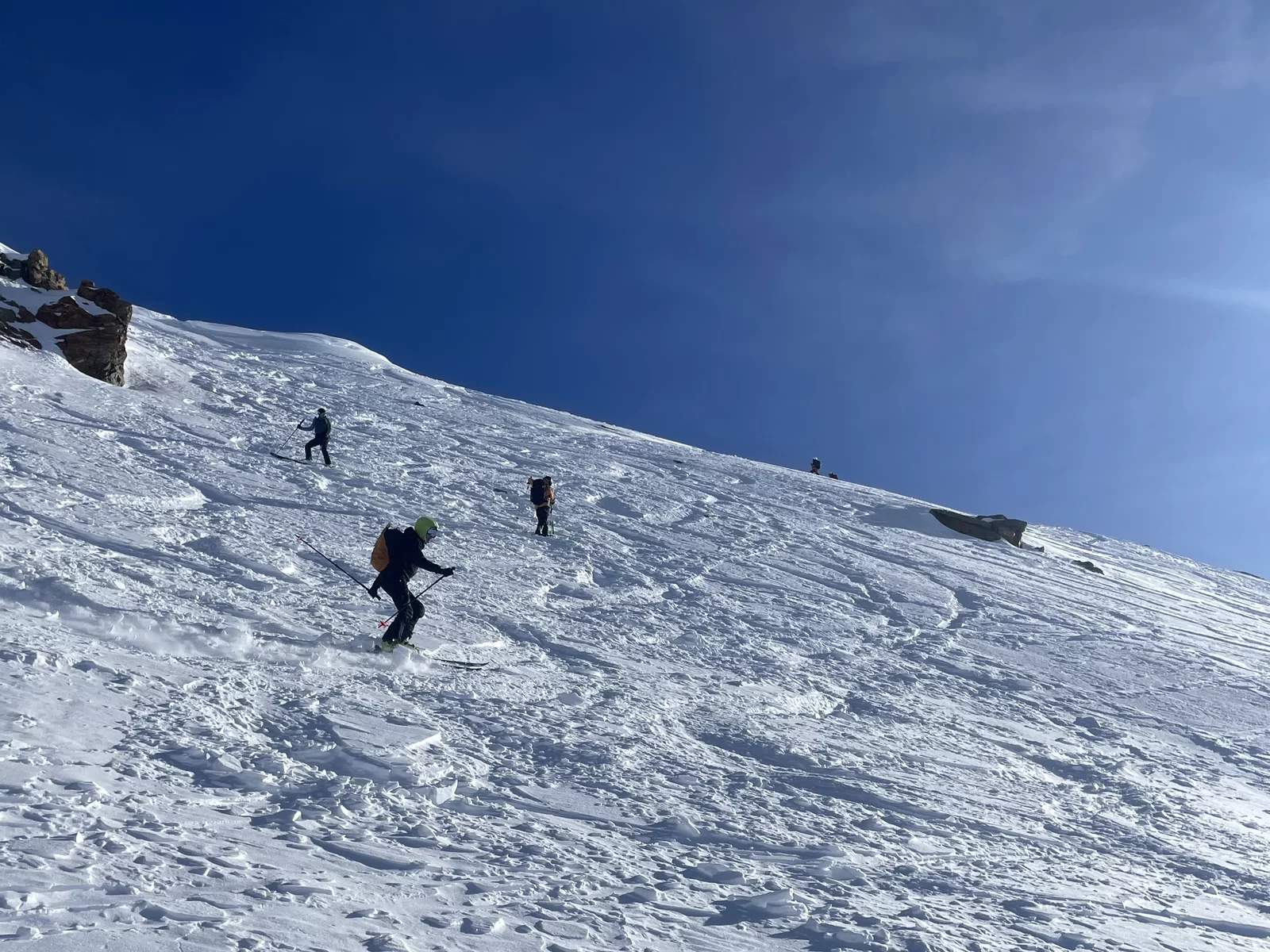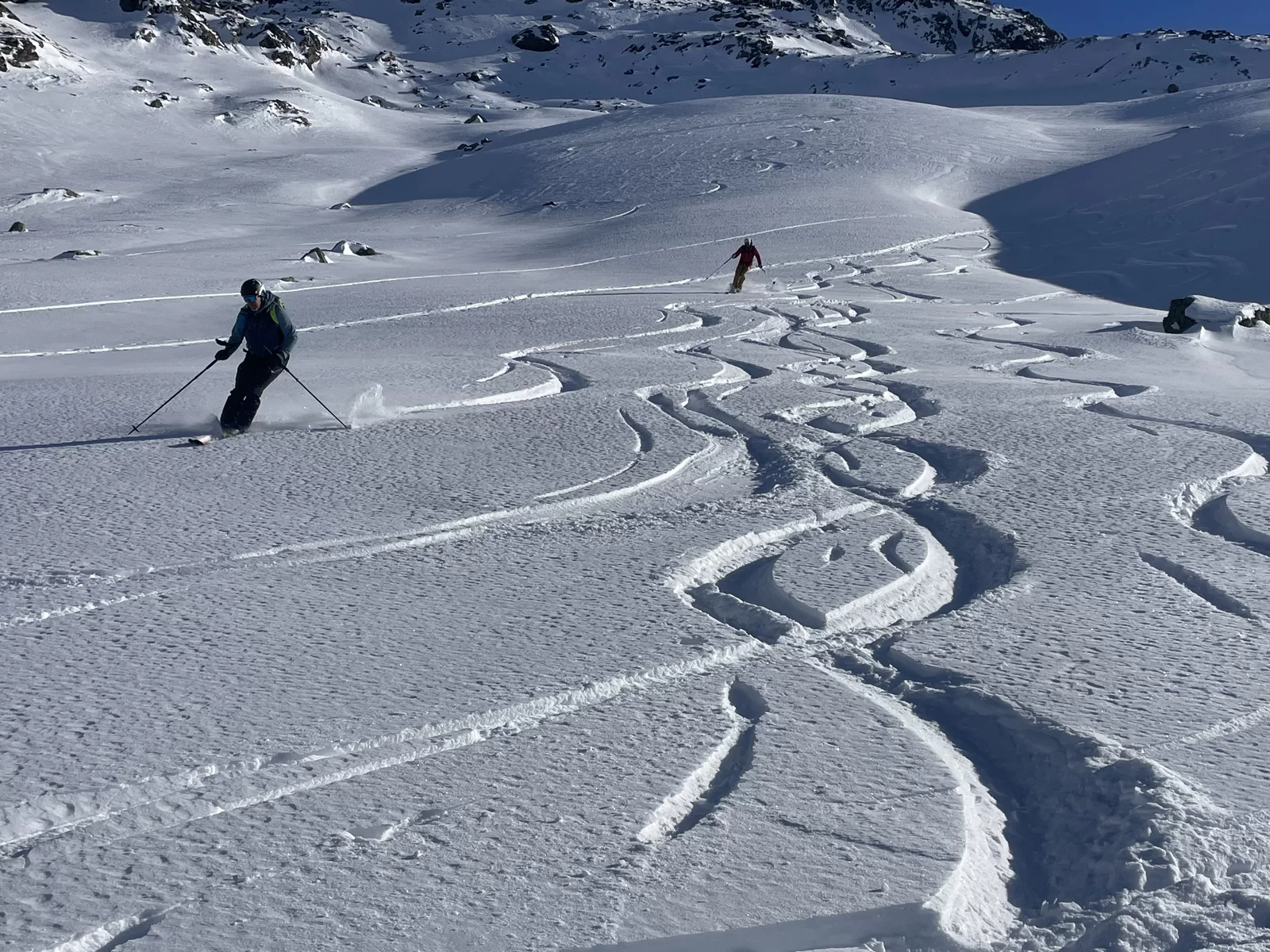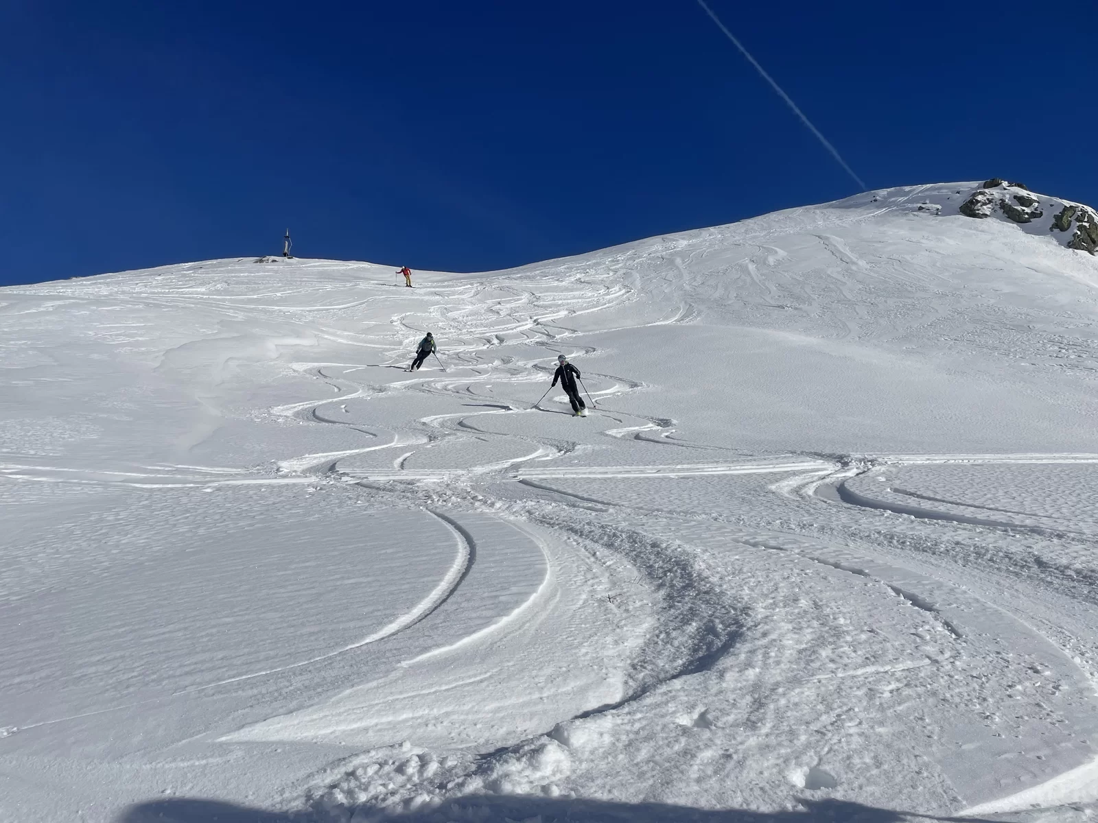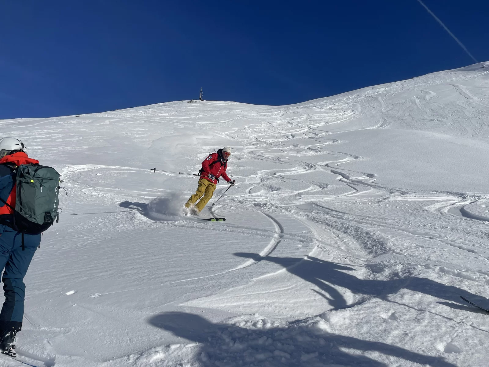 Wenn der Schnee nicht vom Himmel fällt, dann braucht es Mut und Glück, um den Interessierten trotzdem etwas bieten zu können. Nach meiner Erkundungstour am Piz Ursera vor einer Woche folgten 2 Tage Nordwind. Vor dem Start war ich deshalb nicht sicher, noch etwas Pulver zu finden. Die durgeführte Skitour war schlussendlich viel besser als zuerst vermutet wurde. Man hat noch sehr viele unverspurten Passagen gefunden. Die Teilnehmergruppe, bestehend aus 2 TL und 4 Teilnehmer, hat den Aufstieg zum Piz Ursera in 3 Std. 15 Minuten bewältigt, dies trotz kalte Biese. Man war also zügiger unterwegs als ich gerechnet habe. Eine geniale und sportliche Gruppe. Nach einem kurze Halt auf dem Gipfel, mit strahlender Sonne und eine ausgezeichnete Weitsicht, folgte die Abfahrt. Meiner Meinung nach eine gelungene Neujahrestour. In der Val Orsera hat es noch Platz für weitere Touren, sofern das Wetter dies es zulässt. Schön war mit Euch diesen speziellen Tag verbringen zu dürfen. Den SAC-ler, Tourenkolleginnen und Kollegen, TL und Vorstand viel Glück im neuen Jahr.