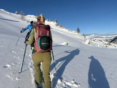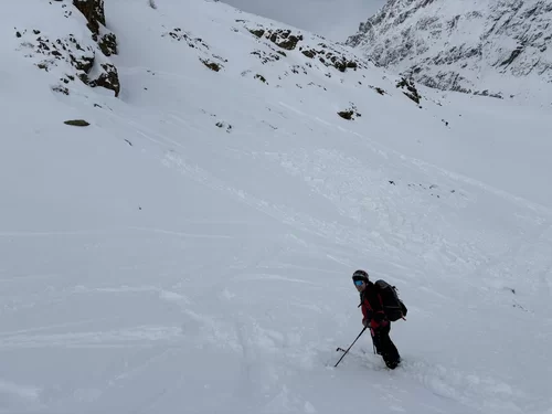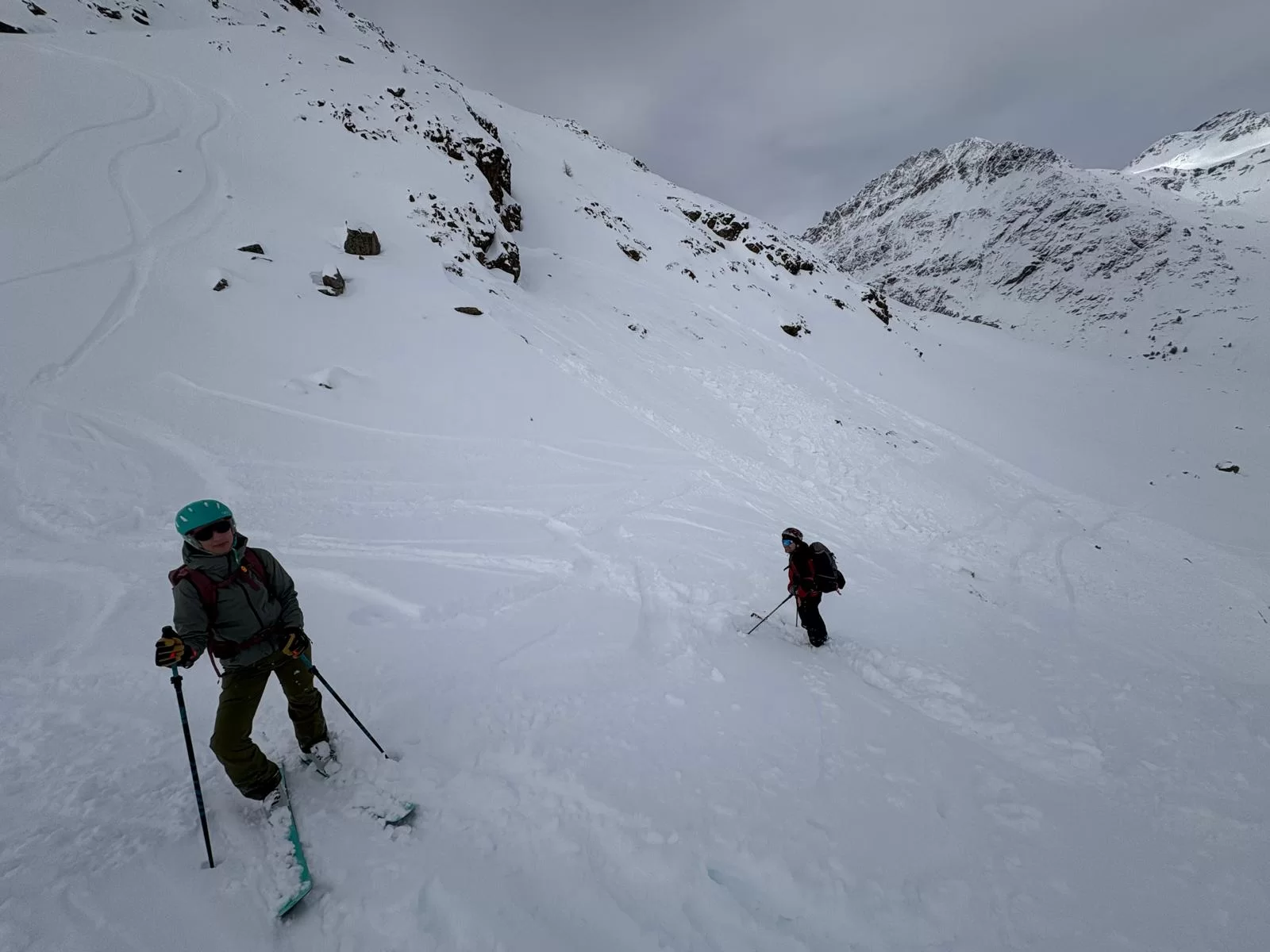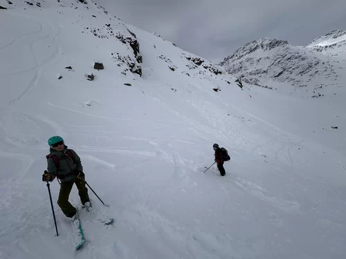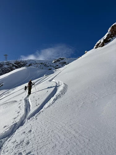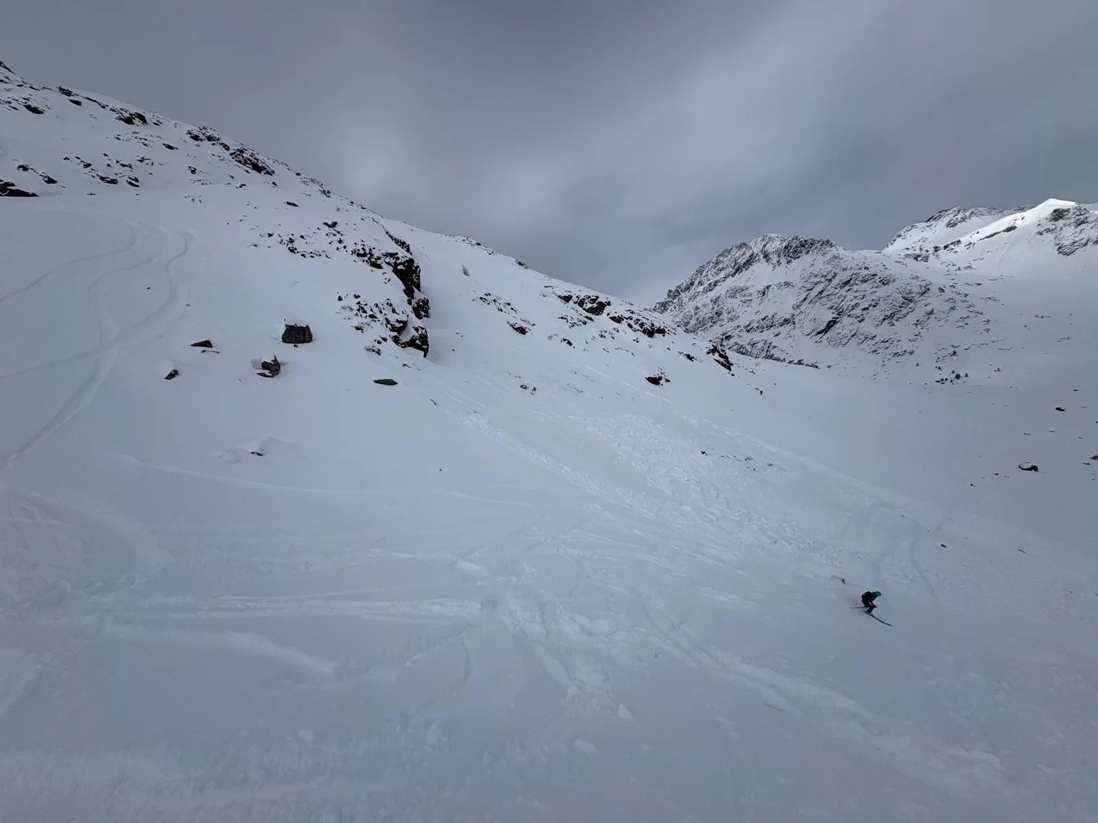 Eine heikle Lawinensituation veranlasste mich statt auf den Piz Alv auf den Sass Queder 3066m, ab der TS Diavolezza, zu Fellen (Steigen) mit den SAC-Mitgliedern. Dieser Entscheid war richtig. Spontane Lawinen waren nicht auszuschliessen. Nach dieser Tour gab es noch viel zu erzählen im Rest. Bernina suot. Vielen Dank an die TN, Xavier und Nina. Der SAC-TL, David.