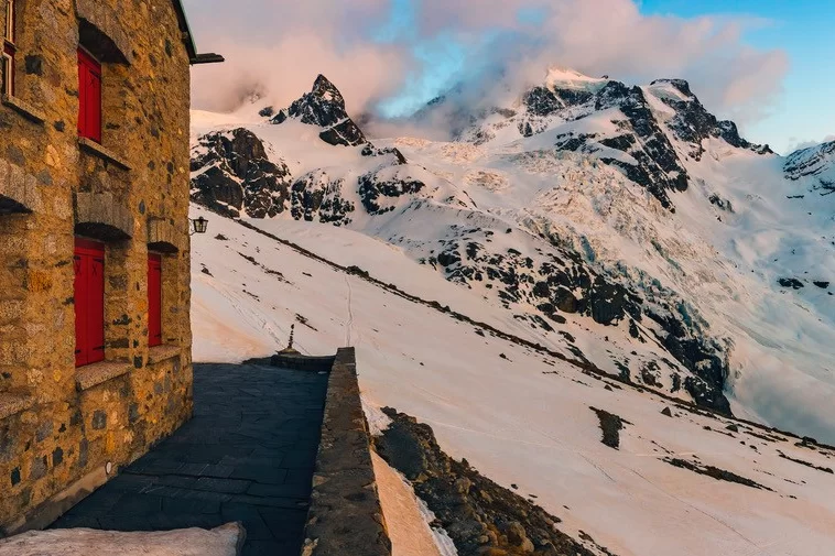- 1899 Bau der ersten Hütte auf der Moräne des Tschierva-Gletschers.